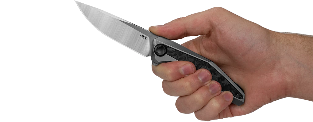 · Handle: Stonewashed titanium, marbled carbon fiber front insert